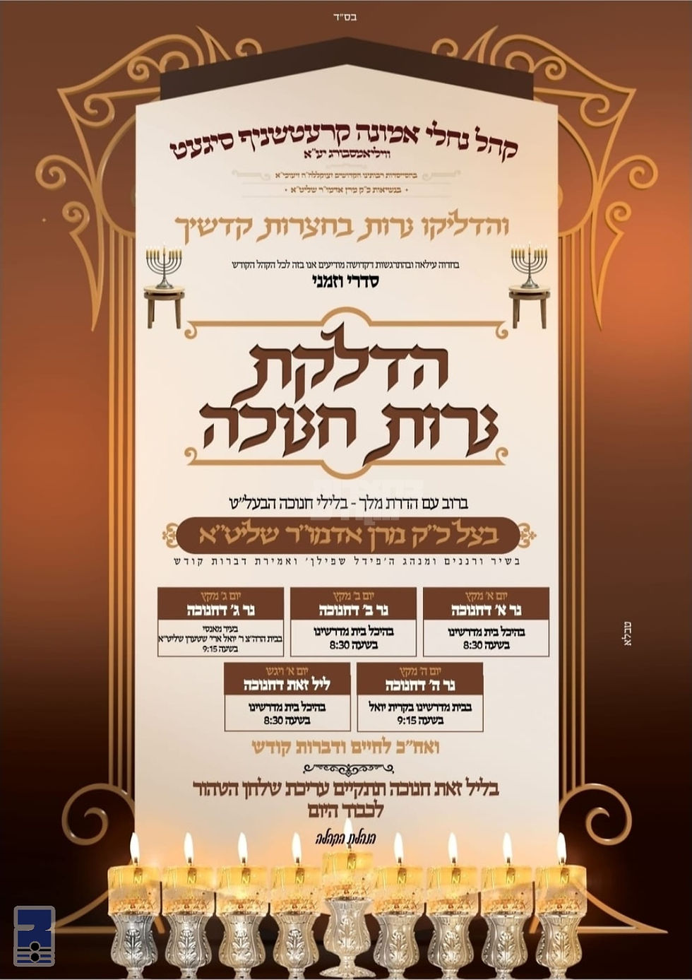 ליסטע פון זמני הדלקות נרות חנוכה בחצרות הקודש איבער די וועלט | זאת חנוכה