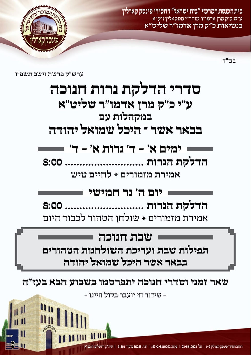 בית יצחק ספינקא | 8:00 |