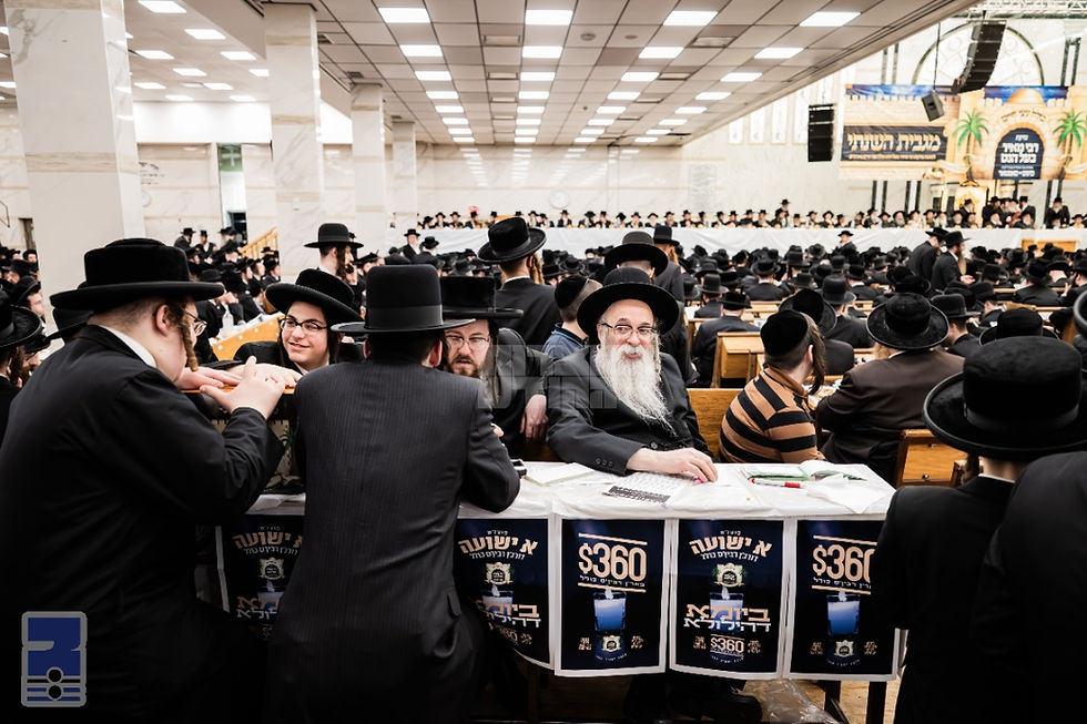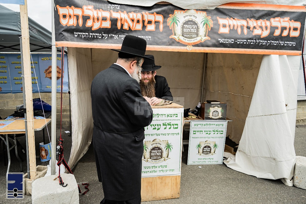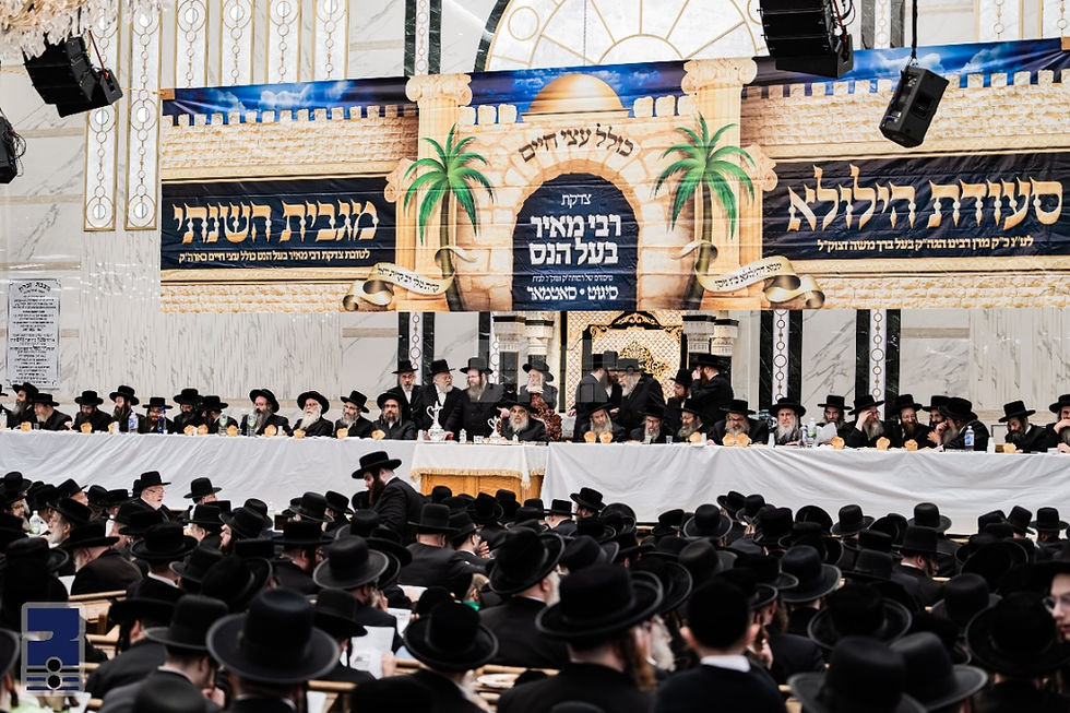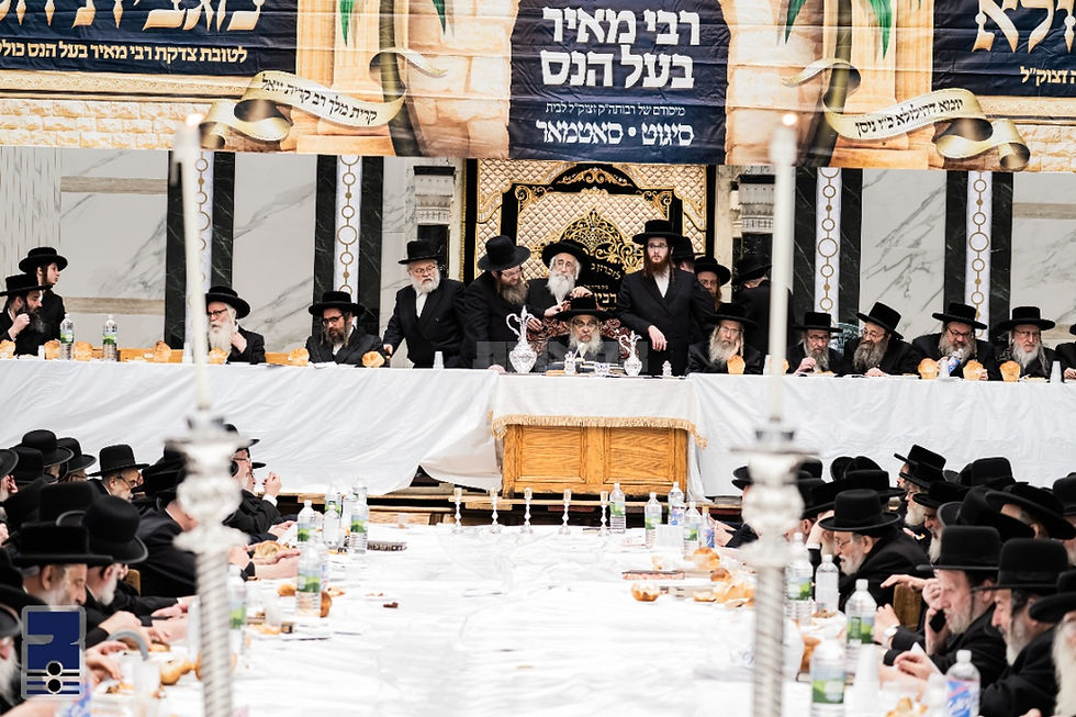 פארנאכטס איז דער רבי שליט"א אריינגעקומען צו מנחה אין ביהמ"ד הגדול און זיך דערנאך געוואשן צום סעודת הילולא רבתי קאמבאנירט מיטן צענטראלן מגבית לטובת כולל עצי חיים לצדקת רבי מאיר בעל הנס. דער ביהמ"ד הגדול איז געווען אויסגעשטעלט אויף א הערליכן פארנעם, פון ברעג צו ברעג, א לאנגער אויבנאן האט זיך געצויגן אויפ'ן מזרח זייט פון ביהמ"ד, וועלכע איז געווען באשיינט מיט דאס השתתפות פון פילצאליגע רבנים, אדמורי"ם ודיינים שליט"א, רבני ודייני ק"ק סאטמאר, ובתוכם די פילצאליגע רבנים הגאונים נכדי בעל הילולא, ולידו פון רבי'ן שליט"א האט באשיינט אחיו כ"ק הגה"צ אבד"ק סאטמאר 15'טע עוו. שליט"א נשיא כולל עצי חיים.