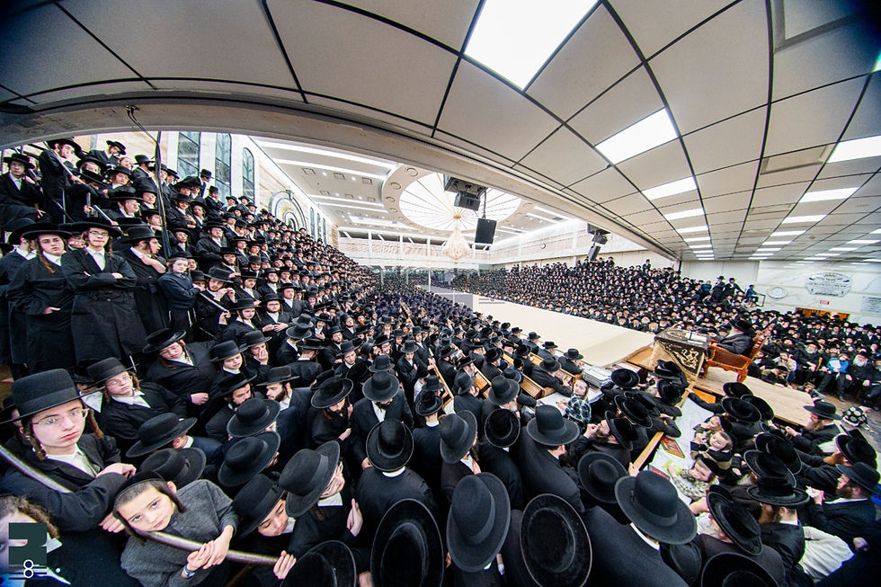 כִּי קָדוֹשׁ הַיּוֹם • אלפי חסידי סאטמאר דערווארעמען זיך ביים טיש ליל זאת חנוכה אין קרית יואל