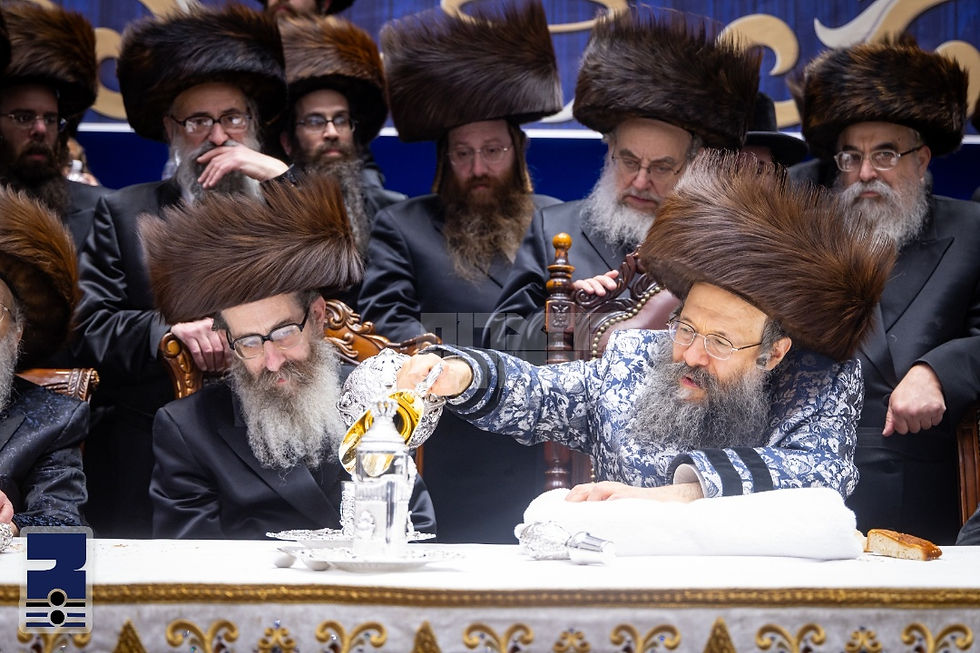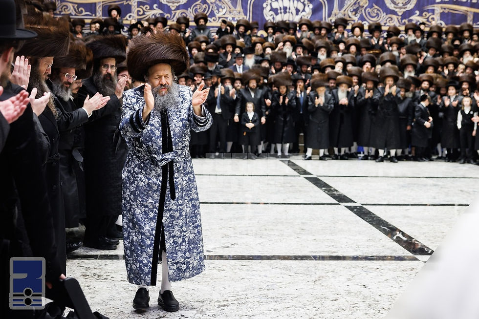 נאך ארום א האלבע שעה האט מען מקבל געווען את פני הקודש בשירה וזמרה, ווען די רבי שליט"א איז ערשינען אין גרויסן ביהמ"ד מפאר צו זיין בראש שמחתו און זיך געוואשן צום סעודה, ווען די בחורים האבן זיך מיטגעפרייט מיט ריקודין של שמחה אויף די פארענטשעס, בשעת די רבי איז מעודד די ריקודין בעוז ותעצומות.