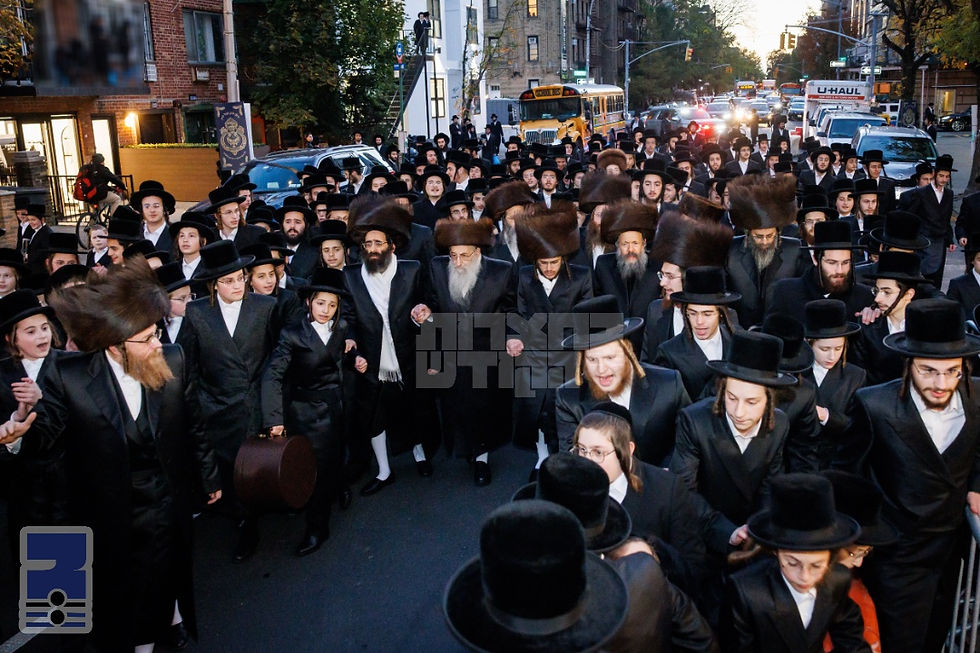 צום באשטימטן צייט נאך מנחה איז די רבי שליט"א ארויס פון ביתו נאווה קודש מיט די חתן און שושבינין, ווי די תלמידי הישיבות פון אלע סניפים האבן באגלייט דעם רבי'ן מיט די חתן און מחותנים ברחובה של עיר צום ביהמ"ד הגדול.