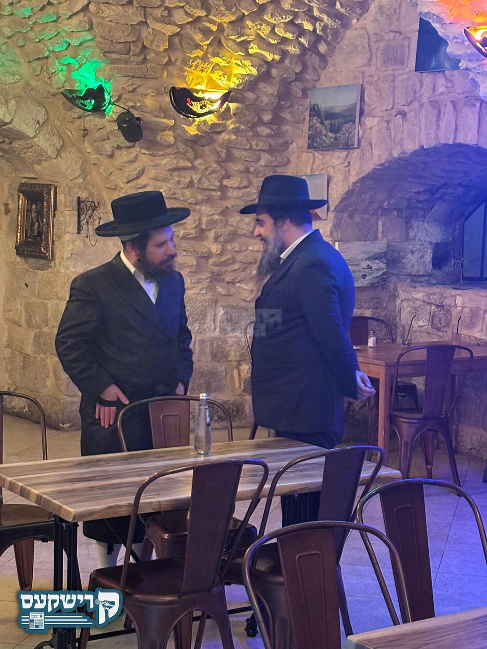 האדמו"ר מסאדיגורא ירושלים באגלייט ארויס האדמו"ר מקארלין סטאלין נאך א באזוך במעונו היינטיגן ליל שישי.