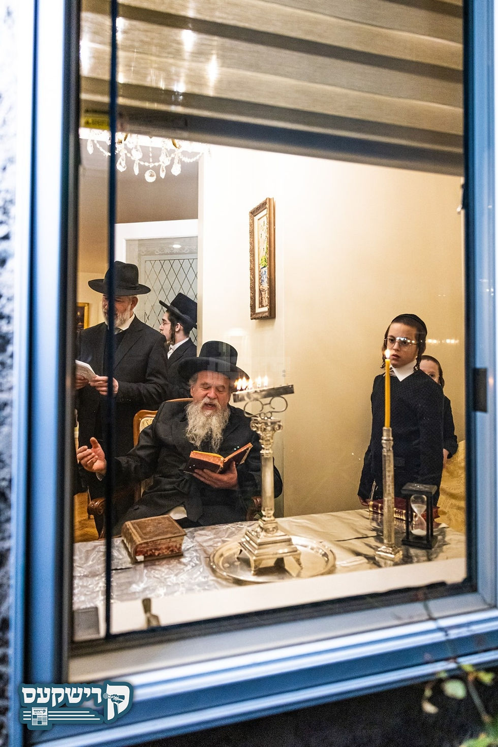 הילד היניק נחמן ראזנבוים ני"ו זון פון האדמו"ר מקרעטשניף כפר עטה באמערקט "קרישקעס" אין א ווינקל אין ישיבת אורייתא, נאכן מעמד ההדלקה דעם זאת חנוכה באשמורת הבוקר, זייענדיג פארטוהן אין די גמרא.