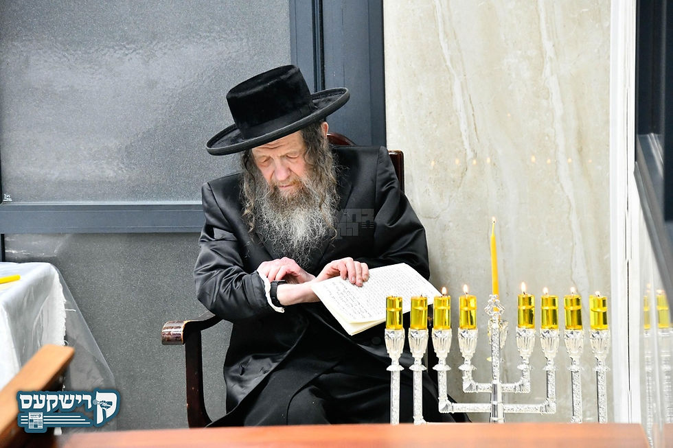 האדמו"ר מקאסוב ביים מיטהאלטן די חנוכה ליכט צינדן פונעם פעטער הגה"צ אבד"ק קאסוב זאליטשיק שליט"א בביתו מדרשו אין בארא פארק.