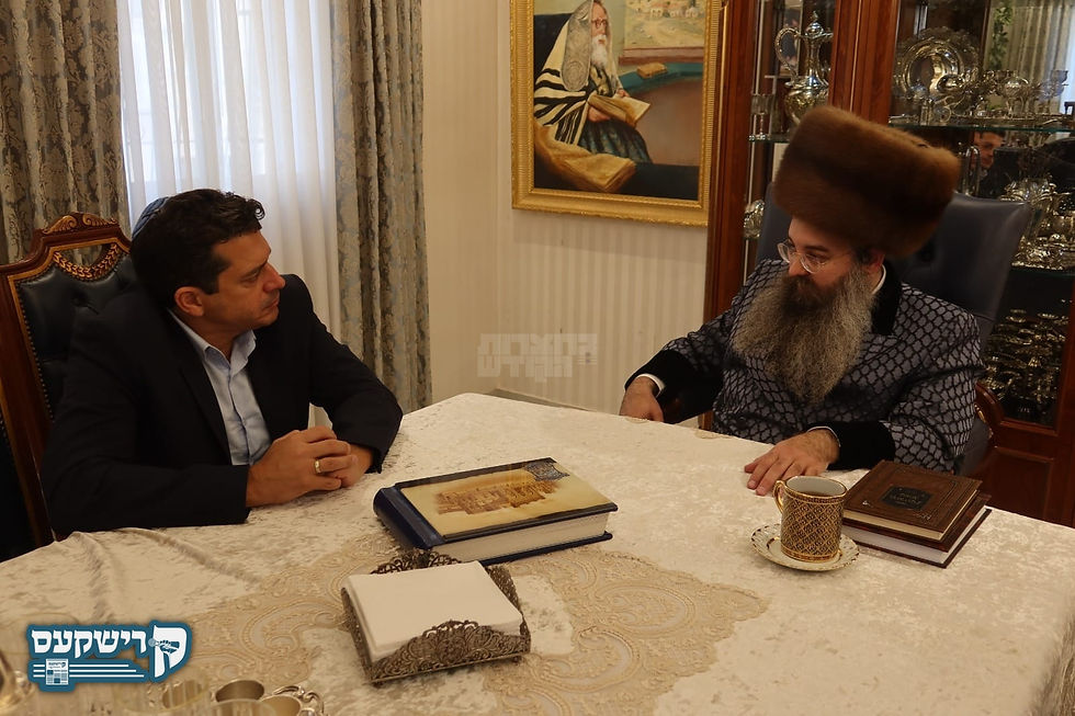 דער מיניסטער פון די פעדעראלע קאמיטע קעגן אנטיסעמטיזם מטעם די מדינת ישראל רעגירונג, עמיחי שיקלי, באזוכט ביי האדמו"ר מסאדיגורא ירושלים, נאכפאלגנדיג די שרעקליכע וואנדאליזם און שווערע אנטיסעמיטישע 'ארסאן פייער' אינצידענט ביים נאסטאלגישן קלויז אין שטאט סאדיגורא, אוקריינא.