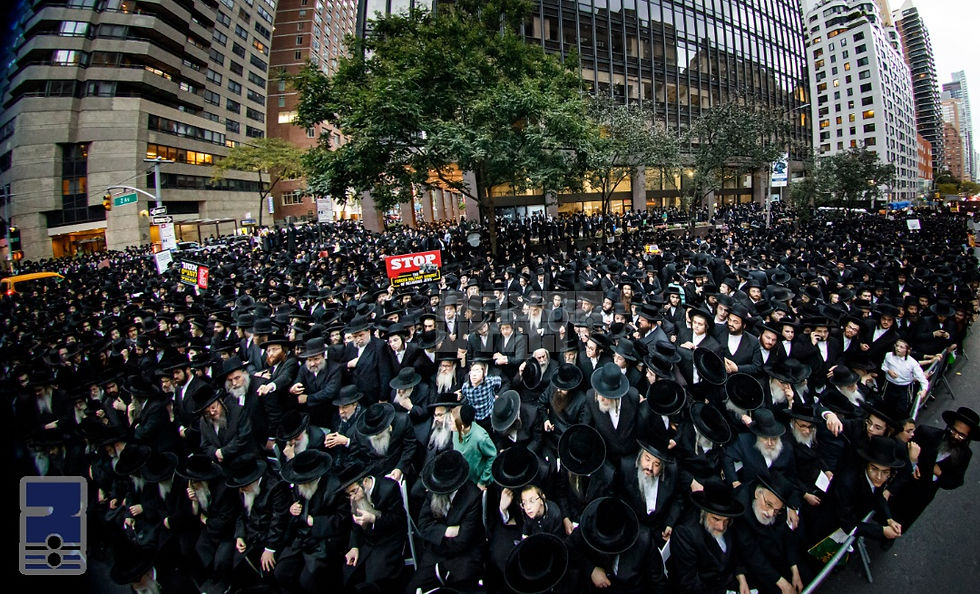 ברוך המקדש שמו ברבים! דער טאג 'זונטאג פרשת נח' וועט פאראייביגט ווערן מיט גאלדענע אותיות בקורות דברי הימים פונעם יהדות החרדית, מיטן אומבאשרייבליכע קידוש השם וואס האט אפגעקלינגען מסוף העולם ועד סופו, פון די רוישיגע גאסן אין מאנהעטן, וואס זענען געווען שווארץ פון רבבות עמך בית ישראל וואס זענען ארויסגעקומען אויסצושרייען דעם וויי געשריי קעגן די שוידערליכע רדיפת הדת פון די רשעי הציונים אקעגן אחינו בני ישראל מיט די לעצטיגער ביטערע גזירה פון גיוס, היל"ת, וואס איז א גזירת שמד ממש.
