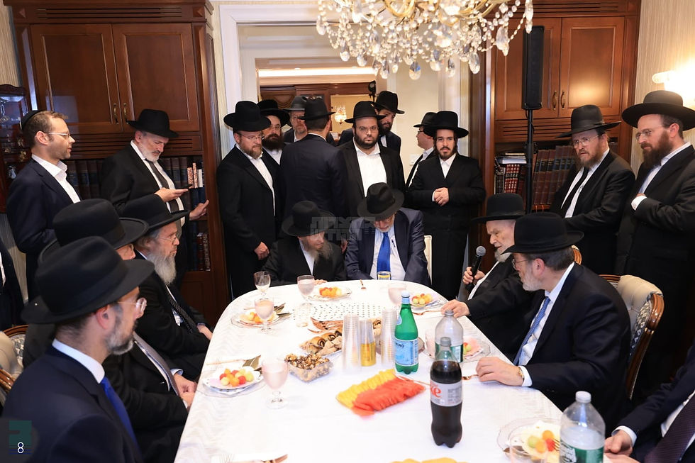 פון דארט זענען די גדולי ישראל צוגעפארן צום שטוב פון הנגיד ר' ברוך קארפינקל וואו עס איז פארגעקומען א מסיבה מיט די באטייליגונג פון צענדליגער נגידים פון איבער גאנץ ברוקלין, דארט האט מען געהערט א דרשה דורך א הוק-אפּ פון בני ברק מפי הגאון הגדול ראש הישיבה ר' דוב לאנדא שליט"א.