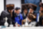 דער בארימטער פאטאגראפירער בחצרות הקודש ר' שלמה טריכטר הי"ו ביים פאראייביגן דעם פורים טיש בצל רבו האדמו"ר מדושינסקיא.