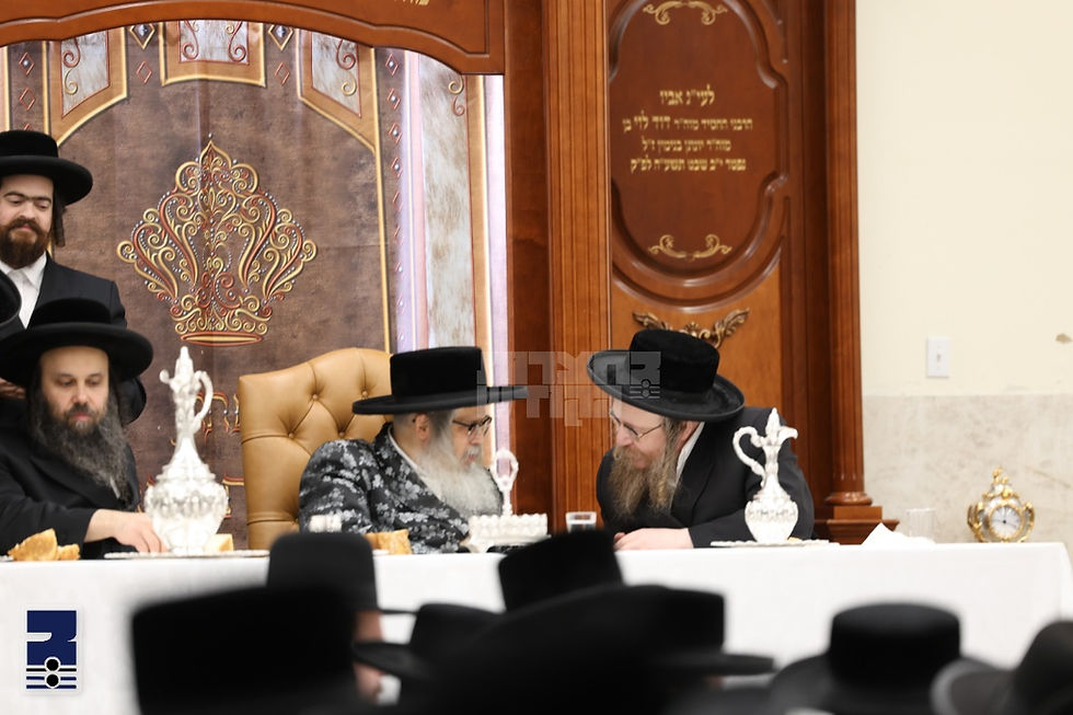 מאנסי: דערהויבענע זאת חנוכה טיש געפראוועט בהיכל "מתיבתא תורה ויראה" דסאטמאר דורך האד' מסאטמאר - ריש מתיבתא
