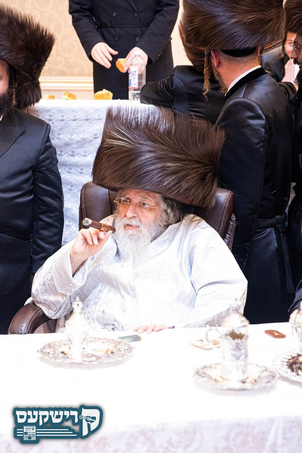 הרה"צ ר' יעקב יוסף האגער בן האדמו"ר מוויזניץ ירושלים באגריסט זיך מיט האדמו"ר מסאטמאר ביים רייכן מסיבה די וואך לטובת די סאטמארע מתיבתא אין מאנסי אין שטוב פון הגה"צ אבד"ק סיגוט שליט"א.