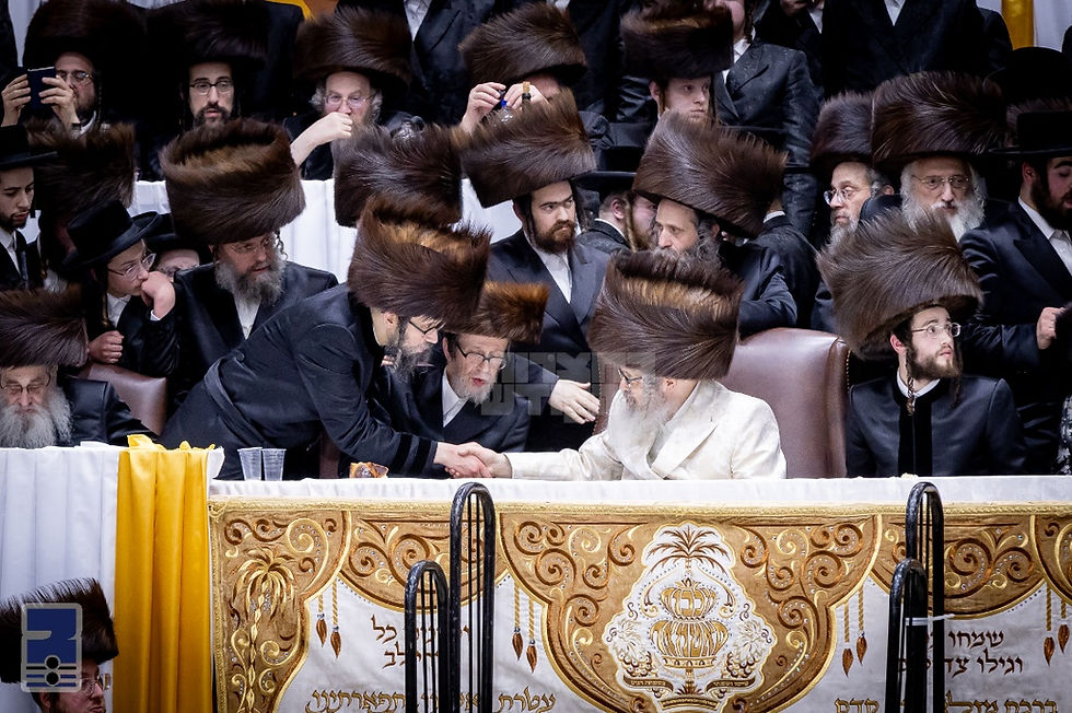 טויזנטער מיטגעהאלטן רבי'שע חתונה בחצרות סאטמאר - אלעסק אין ביהמ"ד הגדול סאטמאר אין וויליאמסבורג