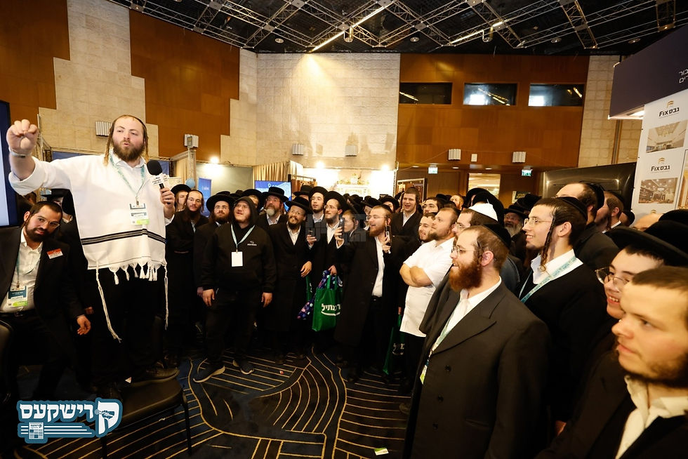 דער אלעמען באקאנטער משמח אלוקים ואנשים ר' וועלוול קירנשבוים הי"ו מערקט "קרישקעס" ביים אונטערהאלטן דעם עולם ביים גרויסן עקספאו די וואך דורך קהילת קארלין סטאלין אין ארה"ק.